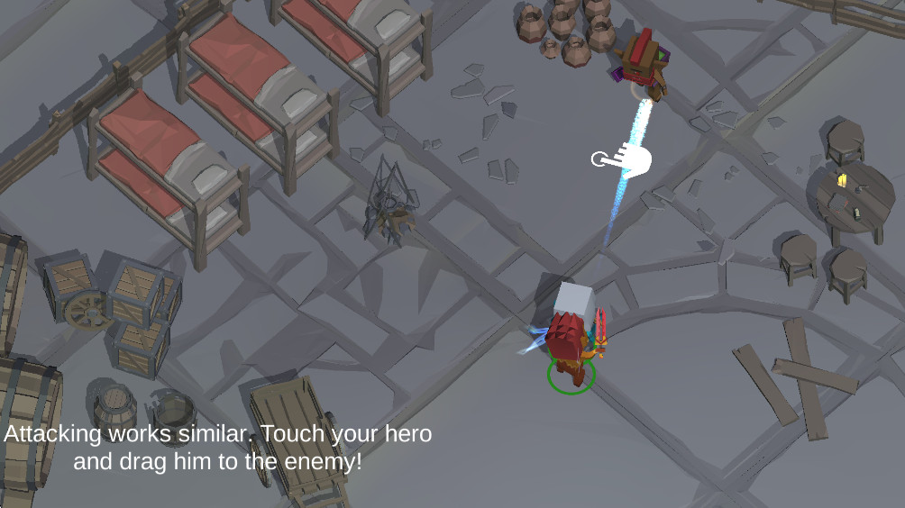 3.你可以通过触摸然后拖拽你的英雄。把你的一个英雄送到标记的位置,注意观察地形特点,合理利用掩体和障碍物;