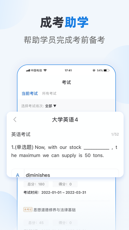 平台提供全面的成考备考支持,包括历年真题解析、模拟考试系统、知识点精讲等,帮助学员系统性地掌握考试要点。智能错题本功能可自动记录薄弱环节,针对性强化训练,大幅提升备考效率。