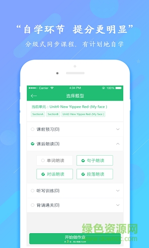 2.作业支持课前预习、课后朗读、听写训练、背诵通关分级学习。每个学习阶段都设置了明确的目标和奖励机制,激发学生的学习兴趣和动力,让英语学习不再枯燥乏味。