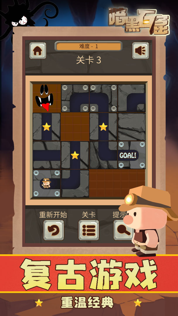《暗黑石窟》是一款极具魔力的探索解谜游戏,它将带领玩家进入一个充满神秘感的黑暗世界。在这个精心设计的石窟迷宫中,你需要运用智慧移动石块、开辟通道,同时收集散落的星星来解锁更多奖励。游戏采用独特的接水管玩法机制,配合清新简约的画面风格,营造出令人欲罢不能的休闲体验。随着关卡推进,谜题难度会逐步提升,既考验玩家的逻辑思维,又能带来解开谜题时的巨大成就感。