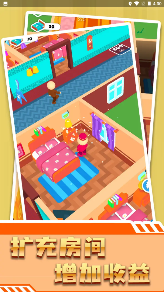 2、体验当酒店老板的乐趣,管理多个房间,自由安排清洁维护,获得经营成就感。