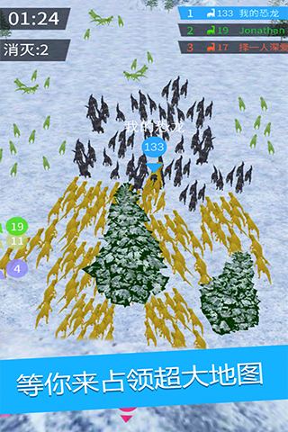这是一款融合了吞噬进化与领地争夺元素的IO竞技游戏。游戏采用鲜艳明快的卡通画风,玩家需要操控初始的小恐龙在城市中游走觅食。通过吞噬散落的金币和弱小同类,你的恐龙族群会像滚雪球般不断壮大。独特的合成系统让玩家可以解锁剑齿虎、迅猛龙等20余种史前猛兽,每种恐龙都拥有独特的属性和技能。实时匹配系统让你随时都能与全球玩家展开激烈对抗,在吞噬与被吞噬的生存竞争中体验最纯粹的IO游戏乐趣。魔性的恐龙造型和夸张的吞噬特效,让每场对战都充满欢乐与刺激。
