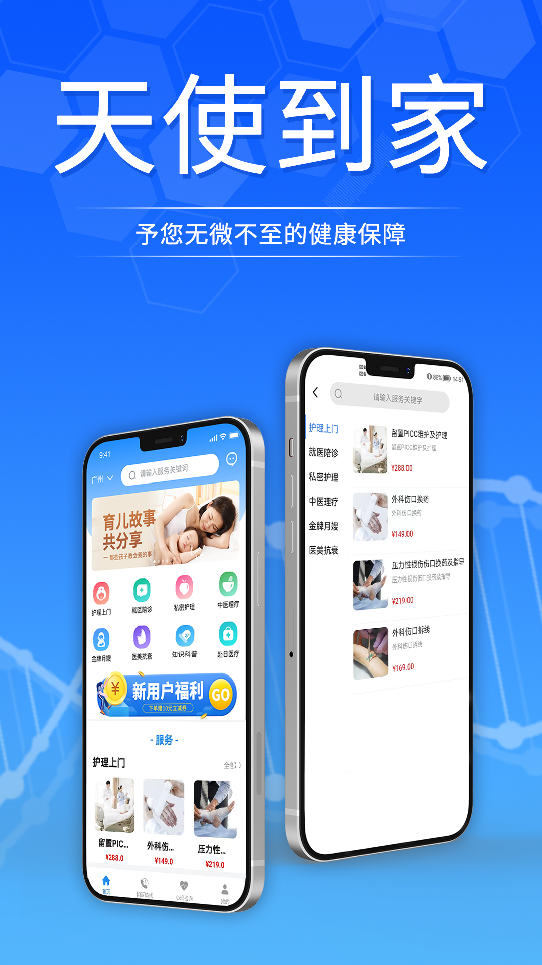 天使到家APP专注于健康服务领域,提供全方位的上门健康管理方案。平台涵盖护理、陪诊、私密护理、中医理疗、金牌月嫂、心理咨询、医美抗衰等多样化服务内容,满足不同用户的个性化需求。所有服务人员均经过严格审核,确保专业资质和服务质量。无论是术后康复、日常保健还是心理疏导,天使到家都能为您提供贴心的解决方案,让健康服务更加便捷高效。