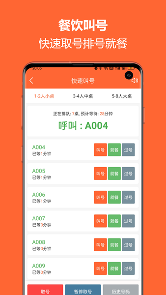8、历史号码:系统自动保存30天内排队记录,支持查询和恢复过号顾客,商家可手动调整排队顺序,体现人性化服务。