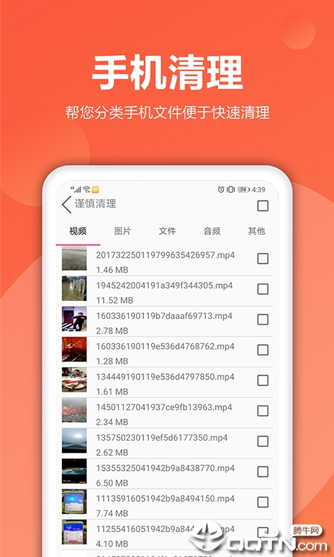 【智能分类】系统自动将文件按类型(如视频、音频、文档)分类,并支持预览功能,方便用户选择性删除,避免误删重要数据。