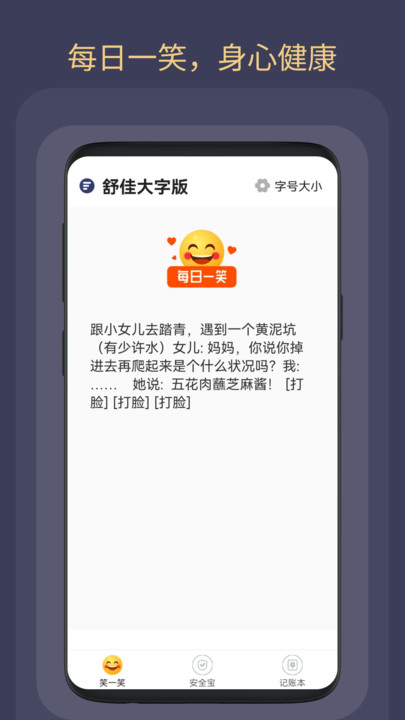 舒佳大字版充分考虑了中老年人的使用习惯和需求,提供了一系列贴心功能。除了基本的字体放大功能外,软件还包含"每日一笑"板块,为用户带来轻松愉快的阅读内容。生活记录功能让用户随时记录健康数据和日常点滴,培养良好的生活习惯。个性化推荐系统会根据用户偏好智能推送感兴趣的内容,让阅读更加丰富多彩。更重要的是,所有功能都经过精心优化,确保操作简单直观,让中老年用户也能轻松享受数字生活的便利。