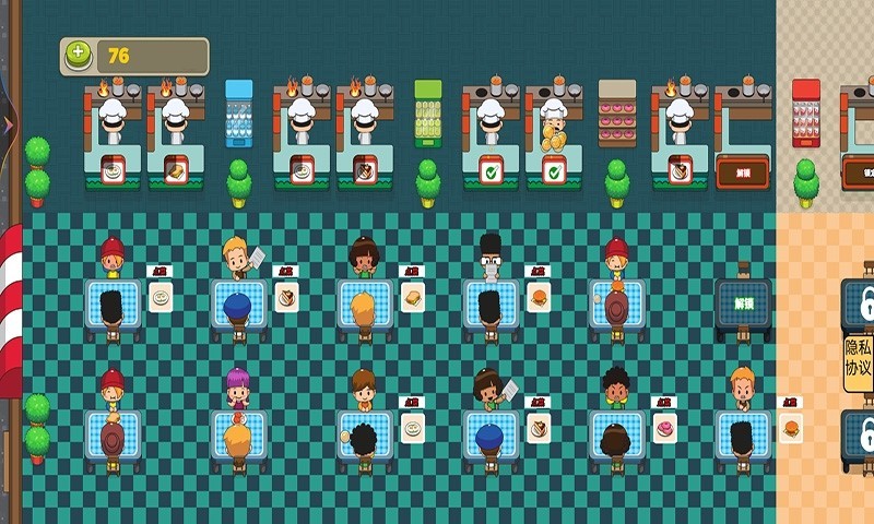 3.卡通画风,玩起来很减压,一点压力都没有,很适合无聊的人玩。精心设计的角色造型呆萌可爱,烹饪过程中的各种搞笑失误动画让人忍俊不禁。游戏还加入了轻松愉悦的背景音乐,让玩家在忙碌的工作学习之余得到彻底放松。