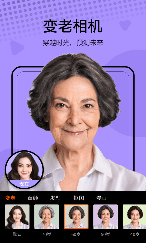 满足用户对未来的好奇心,通过先进的年龄模拟算法,真实呈现用户变老后的样貌。这项功能不仅能带来趣味体验,还能引发对时光流逝的思考,让拍照变得更有意义。