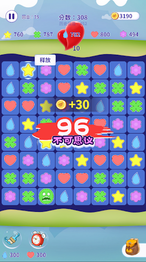 2、当星星被成功消除时,游戏会呈现华丽的特效动画,配合欢快的音效,让玩家在视觉和听觉上都能感受到消除的快感,这种即时反馈大大增强了游戏的趣味性。