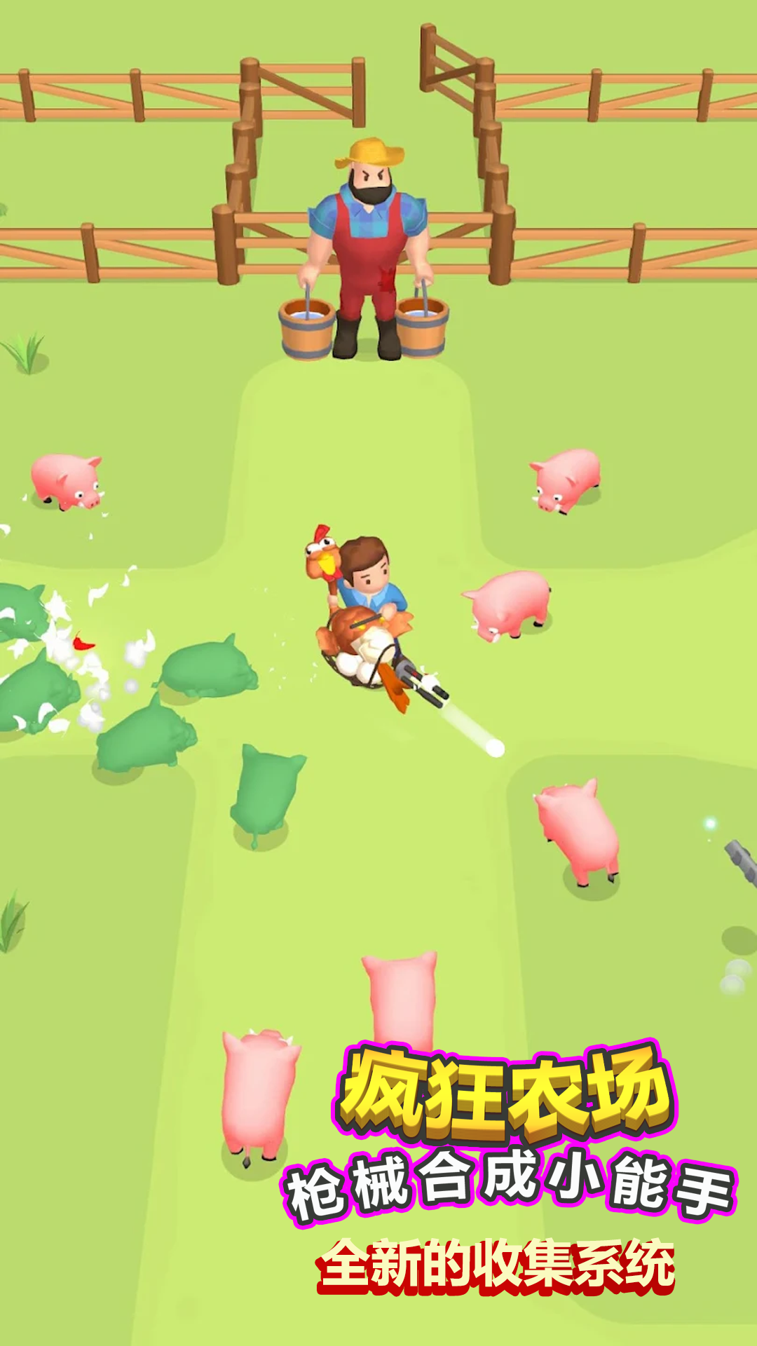 在这款休闲游戏中,你将化身为一名捣蛋鬼,通过合并各种有趣的枪械来提升战斗力。游戏融合了合成与战斗的全新玩法,让你在农场中尽情释放破坏欲。无论是升级装备还是解锁新武器,每一步都充满策略性。独特的彩弹枪机制让你能用颜色标记敌人,而丰富的场景互动则让战斗更加多变。此外,游戏还提供了多种趣味挑战和隐藏任务,让你在捣蛋的同时也能享受探索的乐趣。快来加入这场疯狂的农场冒险,成为最强的枪械合成大师吧!