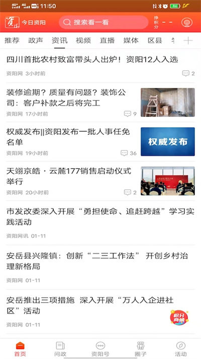 2、专注资阳本地新闻,全面呈现城市热点事件,为您提供最权威、最及时的本地信息服务;