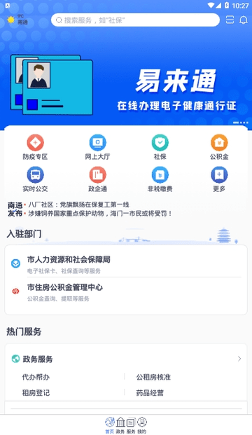 易来通电子通行证是一款便捷高效的电子健康通行证办理软件,为用户提供一站式健康管理服务。通过该软件,用户可在线完成电子健康通行证的申请与办理,实时记录个人健康状态,极大简化了传统纸质通行证的繁琐流程。此外,软件还整合了多项便民服务功能,包括社保查询、公积金查询、实时公交信息查询等,满足用户日常生活需求,让健康管理与公共服务触手可及。