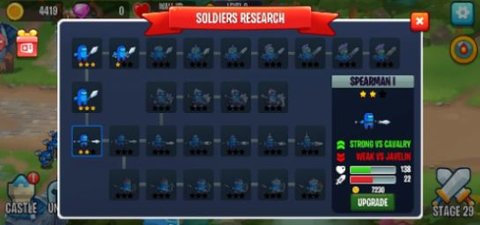2、游戏提供丰富的雇佣升级系统,玩家需要巧妙组合不同部队。面对越来越强大的敌人,必须不断优化防御策略才能克敌制胜。