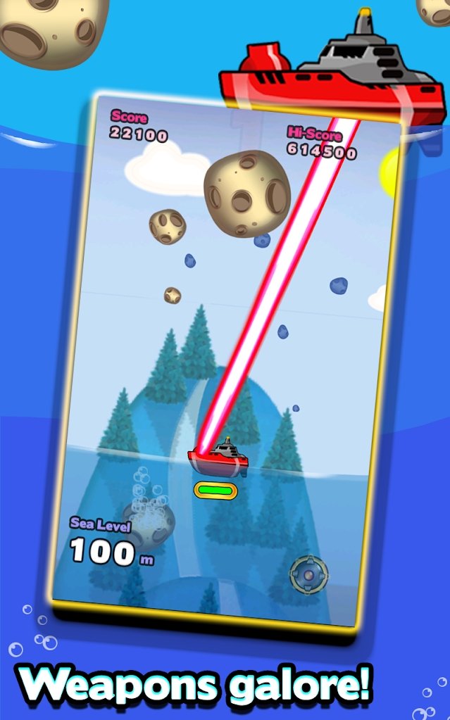 在游戏中,玩家需要操控炮艇在海上移动,瞄准并射击天空中不断坠落的陨石。游戏难度会随着时间推移逐步提升,地球面临的威胁将越来越大,陨石的数量、速度和体积都会不断增加。通过成功击碎陨石,玩家可以获得大量金币奖励,这些金币可用于解锁更多强力武器种类,或是升级现有武器的威力和增益效果的持续时间。游戏采用清新明快的卡通画风,搭配轻松欢快的背景音乐和音效,营造出独特的游戏氛围。操作方式简单直观,玩家只需通过单指点击屏幕即可完成瞄准和射击,目标是精准命中那些威胁地球安全的小行星碎片。