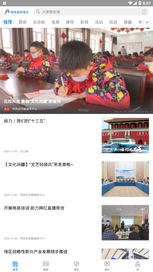 app精心设计了推荐、要闻、便民等12个特色频道,其中"援疆"专栏生动展现对口支援工作成果,"旅游"频道则汇聚了阿克苏地区丰富的文旅资源。平台创新性地将媒体功能与政务服务深度融合,开发了"随手拍"市民爆料、"一键通"政务咨询等特色功能。通过与"石榴云"平台的深度对接,现已整合社保查询、公积金办理、违章处理等2800余项高频政务服务事项,并支持电子证照调用、在线预约等便捷操作。此外,app还接入了水电费缴纳、医院挂号等50余项生活服务,真正实现了"一端在手,生活无忧"。