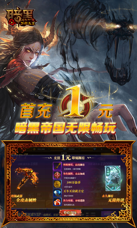 《暗黑:不朽之王》是一款经典魔幻动作MMO手游,采用先进的3D引擎技术打造出绚丽多彩的魔域世界。游戏提供多种经典职业供玩家选择,搭配满屏炸裂的技能特效和酷炫大招,让战斗体验酣畅淋漓。玩家还能驯服神兽作为坐骑,装备华丽的羽翼翅膀,大幅提升战力挑战强大BOSS。无论是单人冒险还是团队作战,都能感受到极致的热血战斗乐趣。