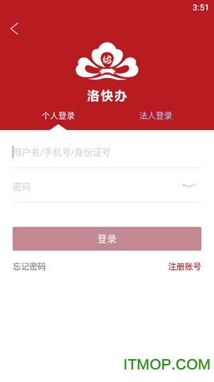 1.注册登录"洛快办"APP,已注册用户直接输入手机号和密码登录系统。