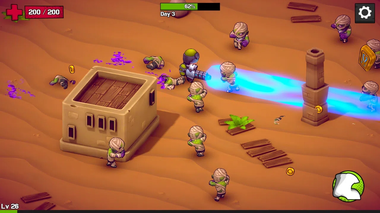 游戏设计了超过100个风格迥异的冒险关卡,每个关卡都有独特的地形和任务目标。你需要在这些关卡中完成营救幸存者、收集物资、摧毁僵尸巢穴等多样任务。随着等级提升,你将解锁更强大的技能,如快速治疗、精准射击等,帮助你在与僵尸的搏斗中占据优势。