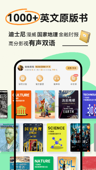 1、英文原版:精选上千本未经改编的英文原著,从《傲慢与偏见》到《哈利波特》系列,让用户沉浸在地道的语言环境中。这些作品按难度分级,适合不同英语水平的学习者循序渐进地提升阅读能力。