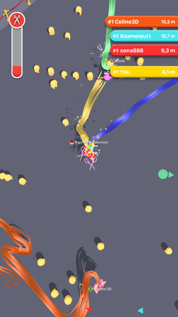 在这款独具匠心的休闲竞技手游中,玩家将扮演一位长发飘飘的小女孩,展开一场关于头发长度的奇妙竞赛。游戏的核心玩法围绕"以发制胜"展开——你需要通过精准操控角色,在跑动过程中收集金色发丝来增长头发长度,同时躲避场景中随机出现的剪刀障碍。随着游戏进程,会遇到各种造型独特的对手,每场对决都是策略与操作的完美结合。特别设计的物理引擎让头发摆动效果栩栩如生,而多变的赛道设计则保证了每局游戏都能带来全新的挑战体验。