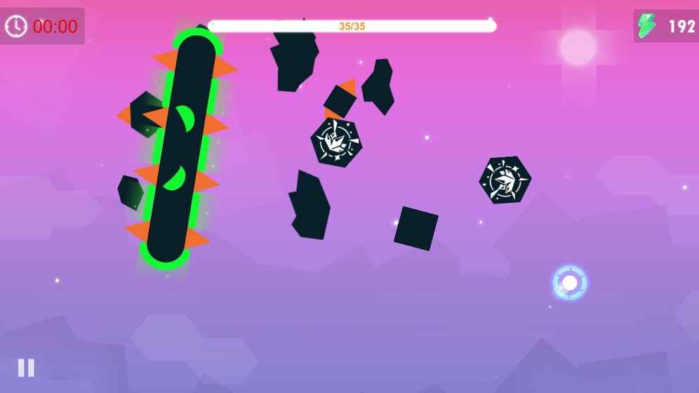 2、在迷人的宇宙中发射前进,并尝试通过各种方块。游戏场景设置在浩瀚的宇宙中,背景中闪烁的星辰和漂浮的星云营造出梦幻般的氛围。各种精心设计的方块机关会考验你的反应速度和操作技巧。