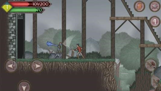 1、复古风格的横版闯关玩法,玩家可以选择使用冷兵器或魔法符文进行战斗,两种战斗方式带来截然不同的游戏体验;