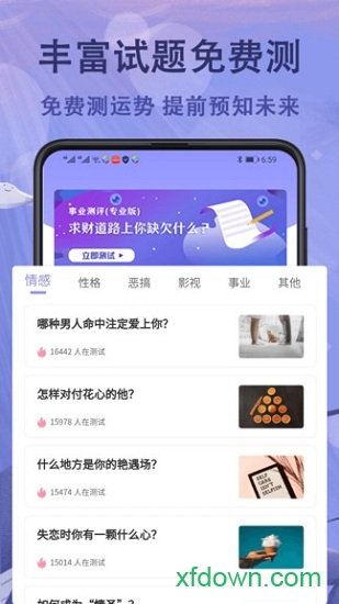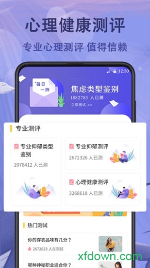 1.抑郁症心理测试功能包含海量经过专业验证的心理测试题目,覆盖抑郁症状的各个维度。