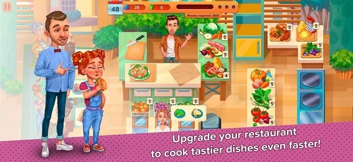 4、极具挑战性的经营玩法,需要不断研发新食谱,升级店铺设施,逐步扩大商业版图;