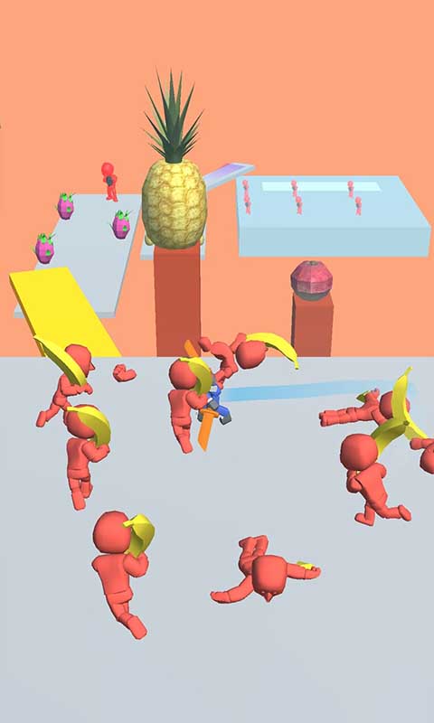 在这个奇妙的世界里,原本美味可口的水果突然变异成了具有攻击性的水果人,它们正成群结队地向你发起进攻!玩家需要挥舞手中的武士刀,将这些不知天高地厚的水果人一一击退。游戏采用物理碰撞机制,每一次挥刀都能感受到真实的打击感。随着游戏进程,水果人的种类和攻击方式会越来越丰富,玩家需要不断提升自己的战斗技巧来应对挑战。