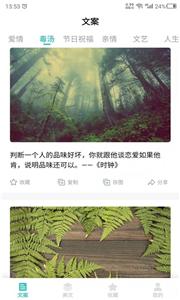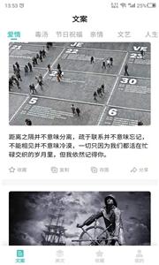 用户们一键注册登录就能够满足自己对于文案的不同需求,汇集了专业优质的文案资源,还准备了一系列非常优美动听的情感文案,了解各种经典美文,让用户们拥有私密安全的阅读空间,令人心情非常舒畅,设置了便捷的定制海报功能,一键就能够完成作品。软件界面设计简洁直观,操作流程人性化,即使是初次使用的用户也能快速上手。数据加密技术保障用户信息安全,让创作过程既高效又安心。
