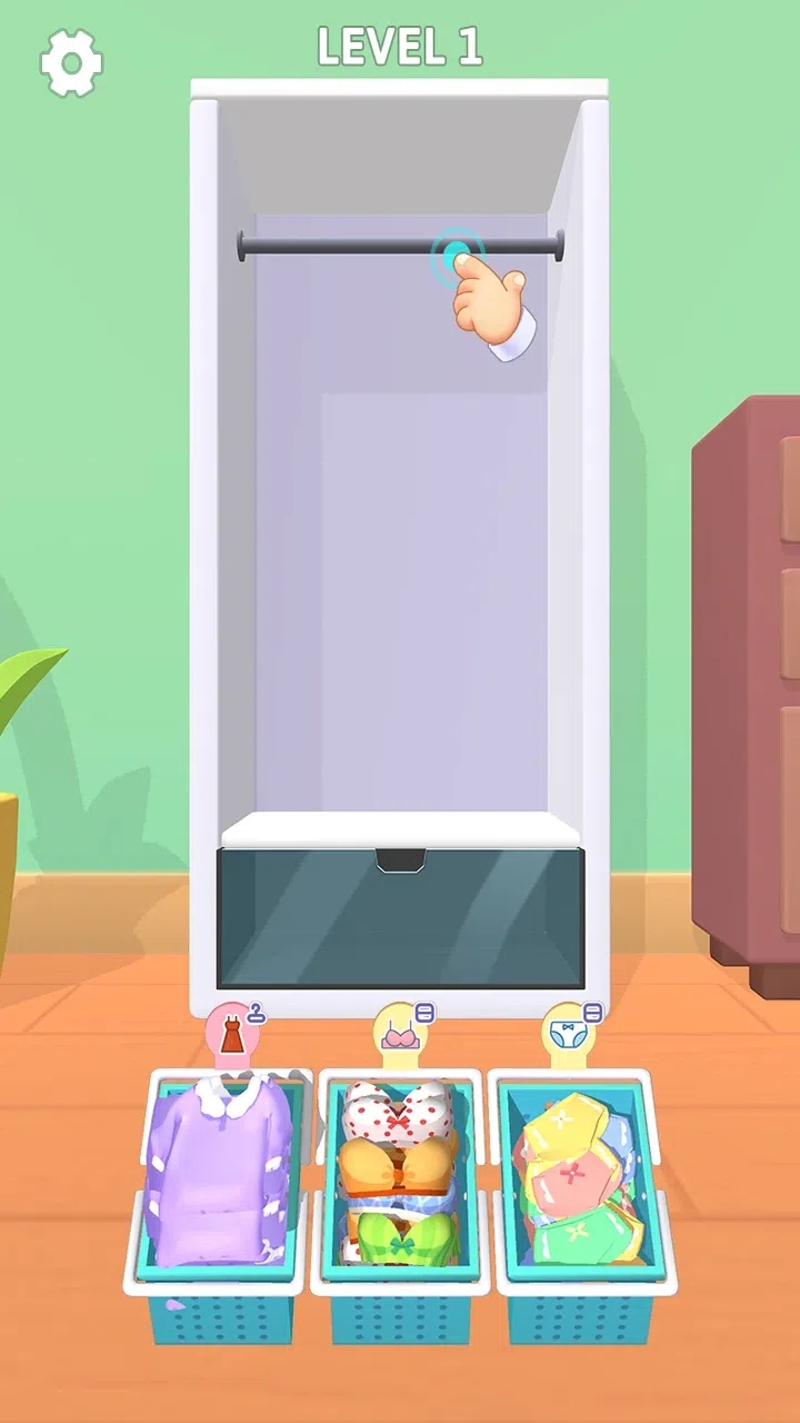 2、游戏设置了多个精心设计的关卡,每个关卡都有独特的衣柜布局和衣物组合。操作简单易上手,但想要完美通关却需要动一番脑筋,这种平衡性让游戏既休闲又富有挑战性。