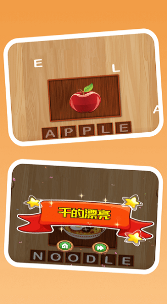字母闯关游戏是一款将娱乐与学习完美结合的趣味教育手游。游戏中包含了动物、食物、日常用品等多个类别的英语单词,每个类别都配有生动形象的插画。比如选择食物类别时,屏幕上会出现汉堡、苹果等食物的图片,玩家需要将对应的英语字母按正确顺序排列组合。这种直观的互动方式不仅能加深记忆,还能让学习过程充满乐趣。游戏特别设计了即时反馈系统,每当玩家正确完成单词拼写时,都会获得鼓励性的音效和动画奖励,这种正向激励能有效提升孩子的学习积极性。