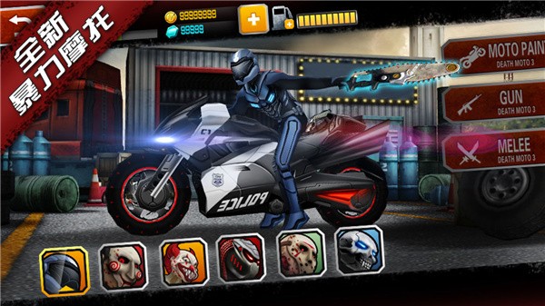 3、和PC上的经典暴力摩托不同,本作在游戏中加入了更丰富的武器系统,玩家们想要使用特殊武器则需要通过比赛赚取金币购买,而不能像原版那样直接从对手身上抢过来。这种设计增加了游戏的策略深度。