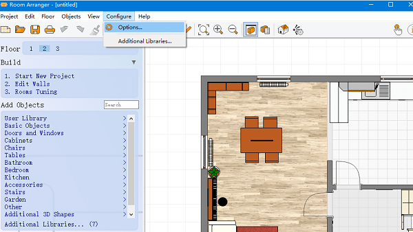 1、打开安装好的软件,然后点击Configure选择options。如果您找不到这个菜单项,可以尝试按F10键直接打开设置窗口。在设置界面中,您可以调整各种软件参数,包括界面语言、单位制式等。