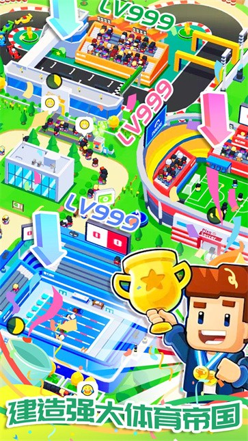 4、随着经营等级的提升,你将解锁更多高级建筑和功能,最终建造出独一无二的专属体育城市。