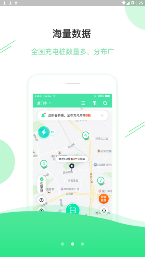 一键充电功能让用户无需繁琐操作即可快速启动充电流程,大幅提升使用效率。软件整合了全国范围内数量庞大、分布广泛的充电桩资源,确保用户在任何地点都能找到合适的充电设施。通过智能算法优化充电方案,帮助用户节省时间和费用。同时倡导绿色出行理念,记录用户的环保贡献,让每一次充电都成为践行低碳生活的实际行动。