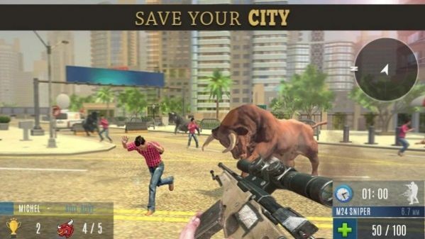 在这个危机四伏的世界里,狂暴的公牛群正在威胁着人类的安全。作为专业的公牛猎人,你将肩负起保卫城镇的重任。游戏采用先进的AI系统,每头公牛都拥有独特的攻击模式和逃跑路线,为战斗增添更多变数。随着剧情推进,你会发现公牛暴动背后隐藏着更大的阴谋。游戏特别设计了实时物理破坏系统,子弹击中的每个部位都会产生不同的效果。从手枪到狙击枪,从霰弹枪到火箭筒,丰富的武器库让你可以针对不同情况采取最佳战术。记住,你的每个决定都可能影响整个城镇的命运。