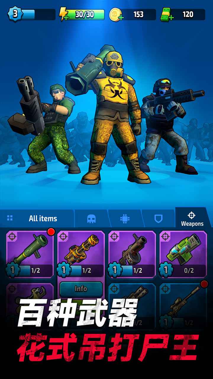 2、多种游戏方式—除了传统的射击玩法,还创新性地加入了炮台防御、近战刺杀等多样化玩法,玩家可以根据战况自由切换战术,体验不同战斗乐趣。