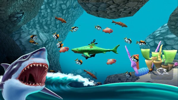 2、游戏设计了7种可操控的鲨鱼角色,每种鲨鱼都拥有独特的体型、速度和攻击方式。玩家可以根据自己的游戏风格选择最适合的鲨鱼进行游戏体验,感受不同的捕猎乐趣。