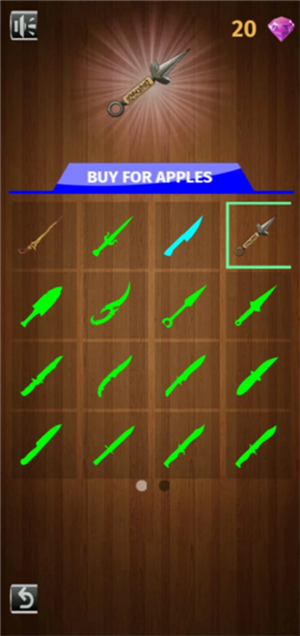 1、在游戏中还能运用自己的积分来解锁更多的武器装备,会给玩家们前来全新的游戏体验。游戏商店提供数十种风格各异的飞刀皮肤,从复古匕首到未来科技感武器应有尽有,每种武器都有独特的飞行特效和音效。