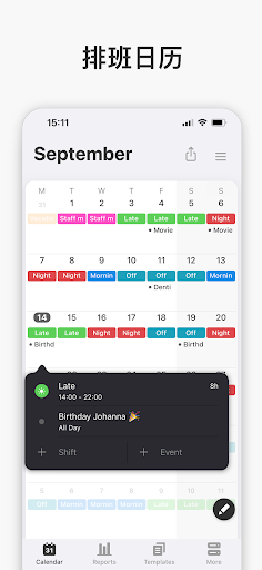 支持将排班数据导出到主流日历应用(如Google日历或Outlook),方便与家人朋友分享工作计划。导出的日历事件包含完整班次信息,支持设置提醒功能,帮助用户更好地规划个人时间。