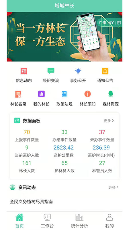 增城林长是通过"互联网+"云平台、大数据、业务可视化等技术构建的政务互联网创新应用平台。该平台深度融合了物联网感知技术、地理信息系统和生态资源监测手段,打造了林业管理的数字化中枢。