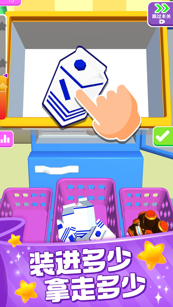 1、装满冰箱大师游戏里可以不断解锁新道具破关,而且新手也能轻松上手。随着游戏进程,玩家将解锁保鲜盒、真空袋等实用道具,它们能帮助压缩物品体积或改变物品形状。