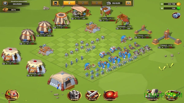 【排兵布阵】系统给予玩家极高的自由度,可以任意组合超过50种不同的作战单位。从古代武士到未来机甲,从普通士兵到神话生物,应有尽有。【万人作战】模式下,游戏引擎可以同时处理上万个单位的实时战斗,场面极其壮观。最有趣的是【趣味士兵】系统,你可以指挥各种意想不到的角色参战,比如会喷火的恐龙、投掷礼物的圣诞老人,甚至是会下蛋的战斗鸡。战场【场景】设计也十分用心,从雪山到沙漠,从城堡到太空站,每个地图都有独特的地形效果。悬崖、河流、陷阱等地形要素都会影响战局,需要玩家灵活应对。