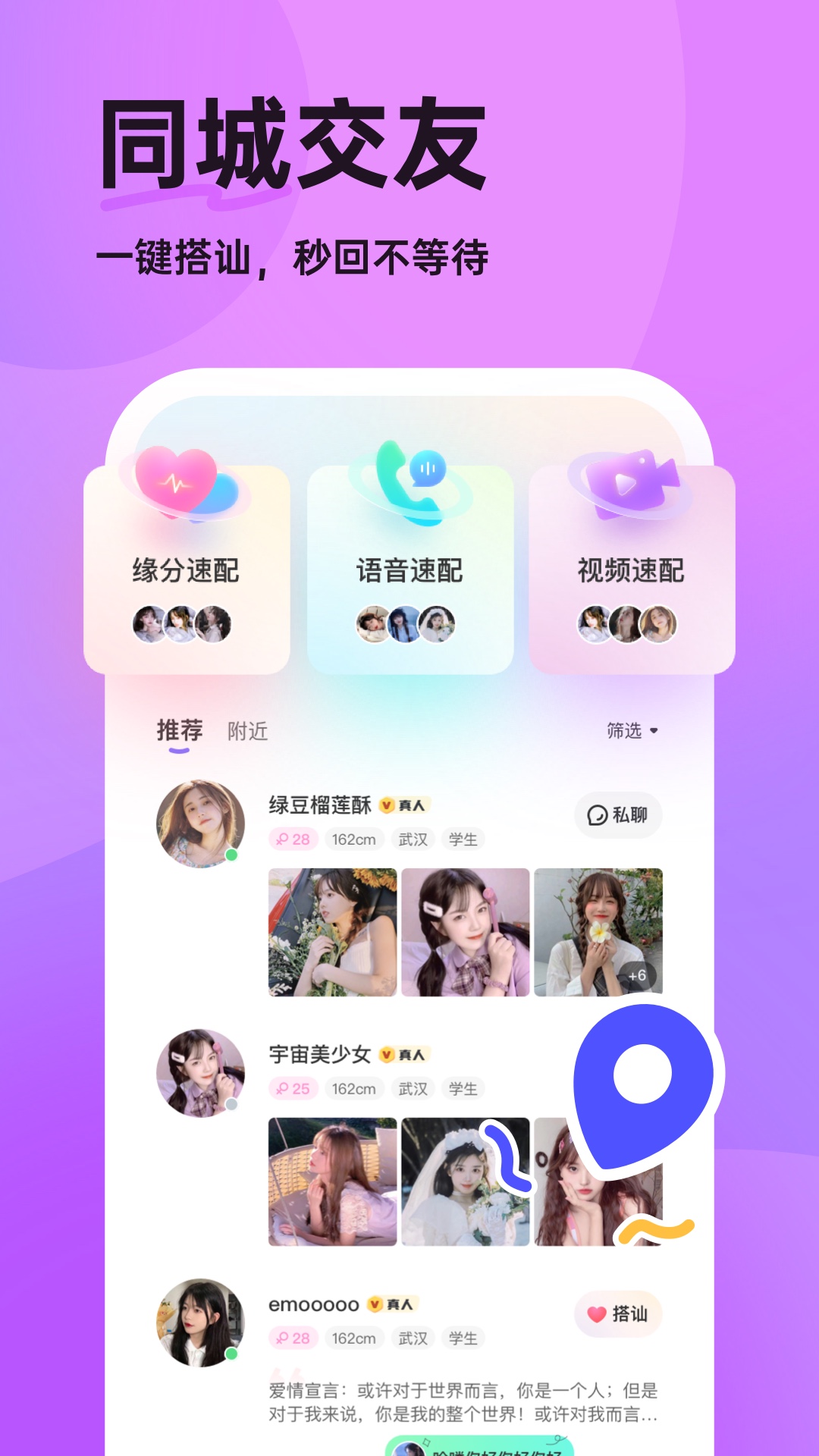 【】附近的人,快速发现同城/附近用户,智能推荐助你找到有缘人;基于LBS定位技术,让你轻松结识周边有趣的人。