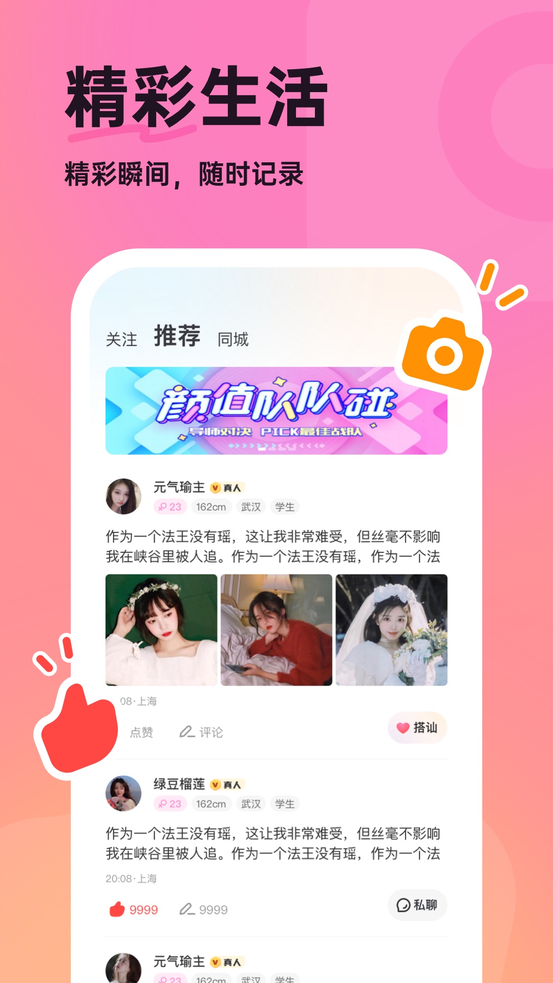 精彩生活 精彩瞬间,随时记录。支持多种内容形式分享,让用户更好地展示自我,增进彼此了解。