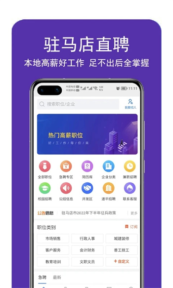 驻马店直聘网是一款专为求职者打造的高效招聘平台,致力于帮助用户快速找到心仪工作。平台汇聚了海量优质岗位,涵盖各行各业,所有入驻企业均经过严格审核,确保信息真实可靠。用户可以随时随地浏览最新招聘信息,精准匹配个人需求,轻松投递简历。无论是薪资待遇、工作地点还是职位要求,平台都提供详细说明,让求职过程更加透明便捷。通过智能筛选功能,用户能快速锁定符合条件的工作,告别传统求职的奔波与等待,实现高效就业。