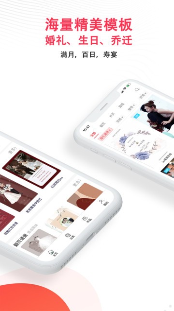 婚礼乎请柬拥有超过1000款精心设计的电子请帖模板,涵盖婚礼电子请柬、生日派对、宝宝满月宴、同学聚会、毕业升学宴、谢师宴、生日宴、老人寿宴、乔迁之喜、婚礼纪念等各类场景。每款模板都由专业设计师打造,确保您的请柬从第一眼就与众不同。无论是浪漫唯美还是简约大气,总有一款能打动您的心。