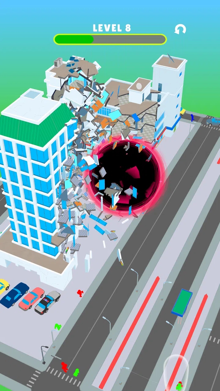 在游戏中,你将扮演如同上帝般的存在,掌握着改变城市命运的力量。你可以在专属实验室中自由融合各种元素,创造出独一无二的破坏力量。从常见的龙卷风等自然力,到神秘的黑洞和不明飞行物,你的创造力就是唯一的限制。游戏鼓励玩家不断尝试新的组合,探索更多毁灭城市的方式。每次实验都可能带来意想不到的效果,让破坏过程充满惊喜。