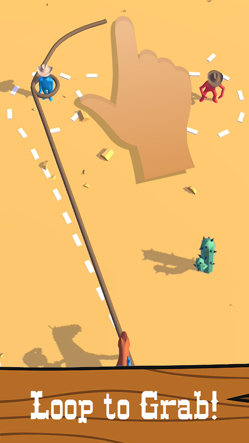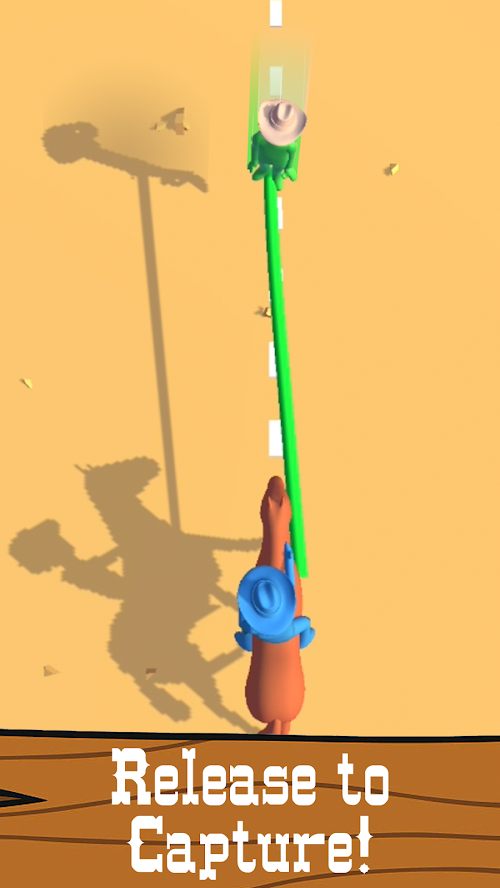 游戏的操作说明简单明了:长按屏幕蓄力,滑动调整方向,松开手指抛出绳索。玩家需要巧妙运用物理原理,让绳索在空中划出完美的弧线,一次性套住多个目标。游戏中的障碍物设计增加了挑战性,比如仙人掌会缠住绳索,岩石会阻挡飞行路线。玩家需要仔细观察场景布局,规划最佳捕获路线。游戏还设置了多种特殊道具,如加速绳索、磁性绳索等,可以在关键时刻帮助玩家扭转局势。
